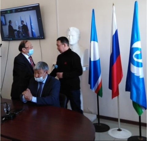 Биир дойдулаахпытын, Ил Түмэн депутатын Егор Ларионовы кытта 55 сааһынан истиҥ көрсүһүү. Хаартысканы ыытта Винокурова Мария Григорьевна